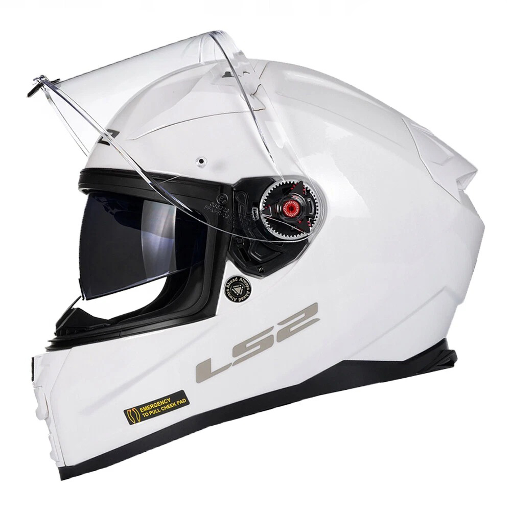Twin shield system (outer clear visor & inner sun visor).